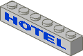 3009p04.dat - Brick 1 x 6 with Blue "HOTEL" Pattern