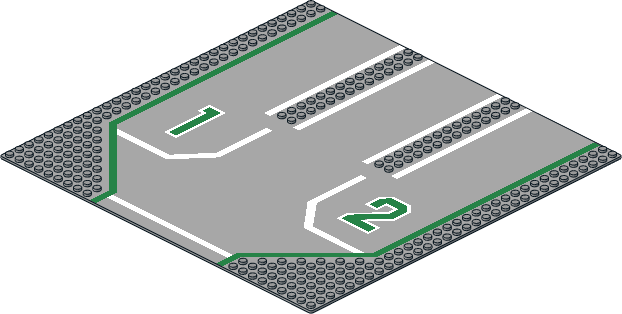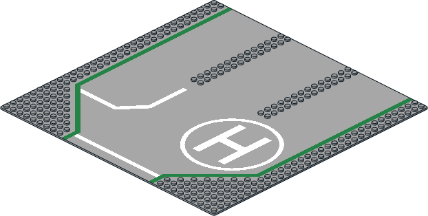 6100p02.dat - Baseplate 32 x 32 Road 9-Stud 3-Lane w/ Helicopter Pad Pattern