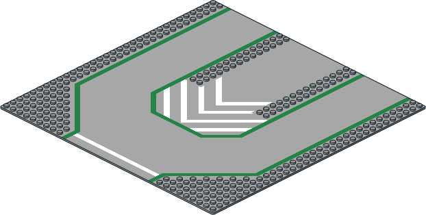 6100p03.dat - Baseplate 32 x 32 Road 9-Stud 3-Lane with Left & Right Numbered