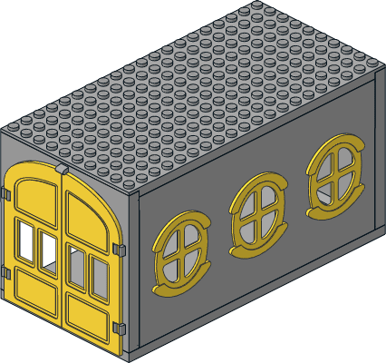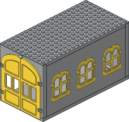 u9310c07.dat - Fabuland Garage Block with Yellow Doors and Four Quadrant Pane Windows (Complete)