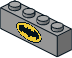 3010pzb.dat - Brick 1 x 4 with Black Batman Logo in Black Outlined Yellow Oval Pattern