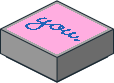 3070bp16.dat - Tile 1 x 1 with Blue "you." Script on Bright Pink Background Pattern