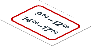 parts/194145b.dat - Sticker 1.4 x 1.9 with White Open Hours "9-12 / 14-17"