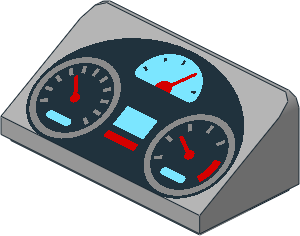 parts/85984pc2.dat - Slope Brick 31 1 x 2 x 0.667 with Black Oval Dashboard with Silver, Medium Azure and Red Gauges Pattern