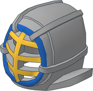 parts/98130p07.dat - Minifig Kendo Mask with Metallic Gold Grille and Blue Trim Pattern