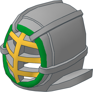 parts/98130p08.dat - Minifig Kendo Mask with Metallic Gold Grille and Green Trim Pattern