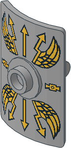 parts/98367p01.dat - Minifig Shield Rectangular Curved with Stud with Gold Lightning Wings and Arrows Pattern