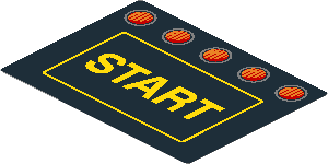 parts/6142617ae.dat - Sticker 3.0 x 4.0 with Yellow "Start" and 5 Orange Lights on Black Background