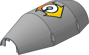 parts/65421p01.dat - Technic Concrete Mixer Half Shell with Yellow and Orange Arrows and White C Pattern
