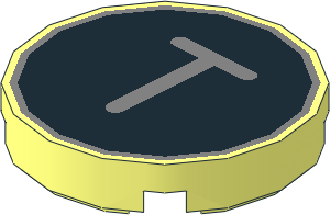 parts/14769ptc.dat - Tile 2 x 2 Round with Metallic Silver "C" on Black Background Pattern