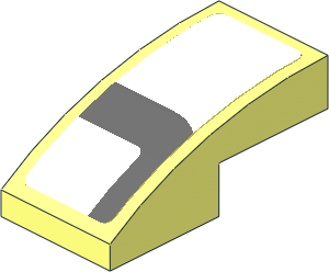parts/6091dy1.dat - Brick 2 x 1 x 1.333 with Curved Top with Headlamp and Dark Grey Stripes on White Background Left Sticker