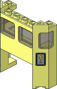 parts/2924bc02d01.dat - Train Front 2 x 6 x 5.333 with 4 x 2 Cutout and Trans Brown Glass with Yellow Lightning Bolt and Black "9V" Stickers