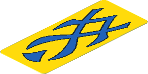 parts/3069bds2.dat - Tile 1 x 2 with Yellow Markings, Blue Curved and Straight Lines Right Model Sticker