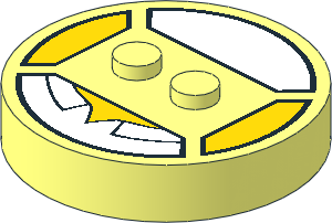 parts/18603c02p0c.dat - Brick 4 x 4 x 0.667 Round with RFID Tag and 2 Studs with Reflective Stripes and ID Badge with "EMMET" Pattern