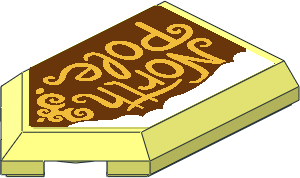 parts/22385d01.dat - Tile 3 x 2 with Angled End with Metallic Gold "North Pole" and Snow Sticker
