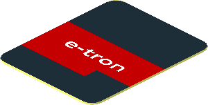 parts/6142275m.dat - Sticker 1 x 0.8 with Red Stripe with "e-tron" White Text on Black Background