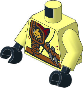 parts/76382p0y.dat - Minifig Torso with Arms and Hands with Fire Power Emblem, Kunai Knives and Scabbard Pattern