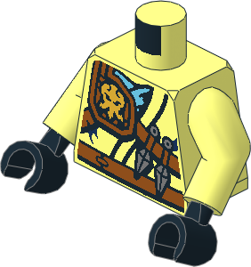 parts/76382pnc.dat - Minifig Torso with Arms and Hands with Belt, Knife, Scabbard and Lightning Power Emblem Pattern
