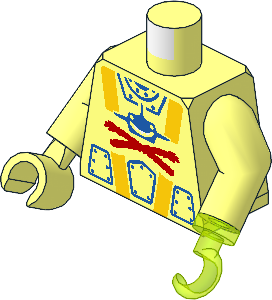 parts/76382p3v.dat - Minifig Torso with Arms and Hands with Pirate Vest over Yellow Skin, Anchor Tattoo, Rope on Back Pattern