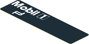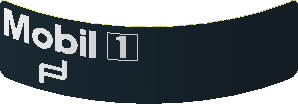 parts/85080dy2.dat - Brick 2 x 2 Corner Round w Stud Notch and Reinforced Underside with White Mobil1 Logo on Black Background Right Sticker