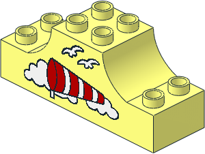parts/4197p05.dat - Duplo Brick 2 x 6 x 2 with Raised Central 2 x 2 Section with Curved Sides with Airport Wind Sock Pattern