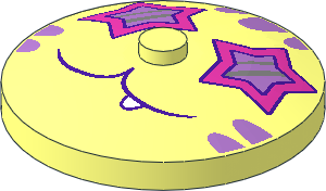 parts/3960p0z.dat - Dish 4 x 4 Inverted with Dark Pink Star Shaped Eyes, Medium Lavender Stripes and Dark Purple Closed Mouth with Tooth Pattern