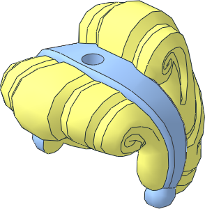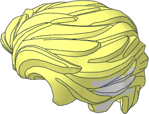 parts/100907.dat - Minifig Hair Female Curled Fringe and Bun, Hole on Top with Molded Band and Earrings